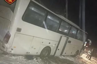 Областные пожарные оперативно прибыли на место и с помощью спецтранспорта вытащили автобус на дорогу.