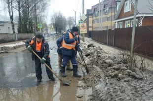 Из-за резкого потепления в Костроме начал интенсивно таять снег. Чтобы предупредить подтопление улично-дорожной сети города и сохранить асфальтовое покрытие, в городе организованы работы по отведению воды с проезжей части.